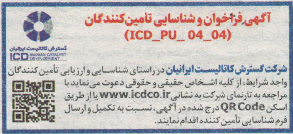 چهارمین فراخوان شناسایی منابع و تامین کنندگان شرکت گسترش کاتالیست ایرانیان – زمستان ۱۴۰۴